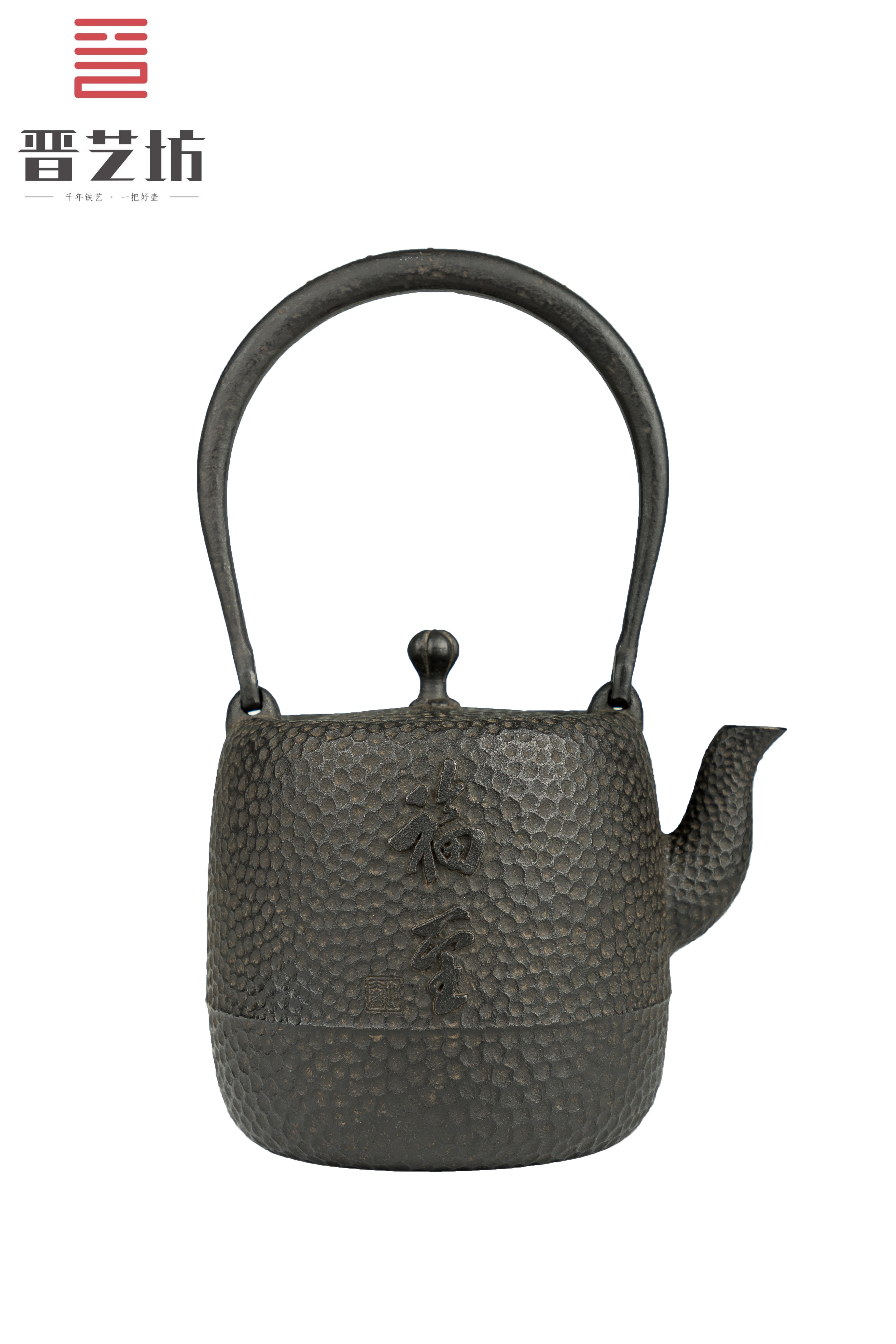 五千年华夏文明,有一个字贯穿始终,那就是“福”字。它是最古老、最吉祥、最受欢迎的文字。晋艺坊《福至》铁壶以“福到”为美好愿景,寓意生活吉祥如意、财源滚滚、健康长寿、事业有成。铁壶正面“福至”二字直抒心意,由中华福文化研究会会长,著名禅意书法家吴大崴老师亲笔题铸写,壶柄上镶嵌了5颗银钉,寓意五福临门,铁壶表面纹理为手作锤纹,千锤百炼,深浅一致, 锤纹凹凸之间透着细腻与质感,工整美观,古朴大气。晋艺坊《福至》铁壶,祈佑我们福来心至,诸事皆宜,不论作为日用茶器,还是欣赏珍藏的器具,大凡若简,雅俗共赏。